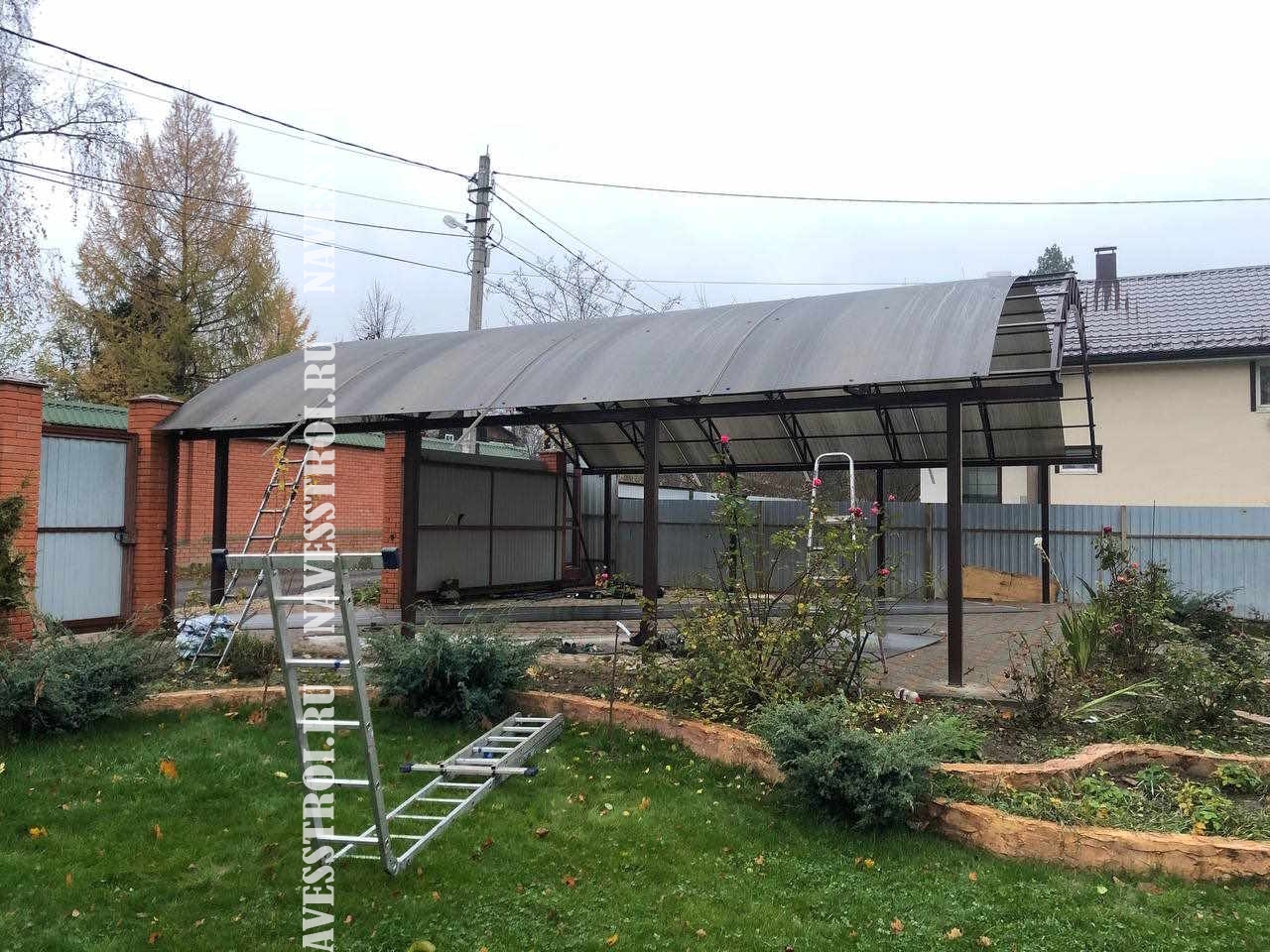 За день на даче изготовили арочный навес 5 на 7 с покрытием поликарбоната. Привезли уже готовые крашенные фермы и весь остальной материал. Все за собой убрали и увезли мусор. Молодцы!