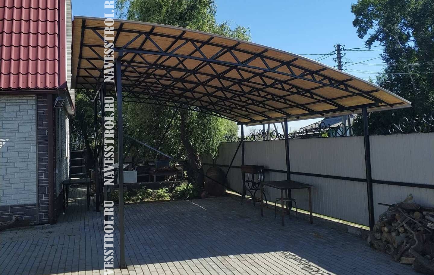 За день на даче изготовили арочный навес 5 на 7 с покрытием поликарбоната. Привезли уже готовые крашенные фермы и весь остальной материал. Все за собой убрали и увезли мусор. Молодцы!